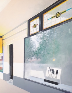 2020Dit schilderij is een studie van de kleuren die stylist Scarfiotti gebruikte voor de (fictieve) Babylon Club in 'Scarface'. Het grappige, tragische personage dat Michelle Pfeiffer hier laat zien is een icoon van mijn generatie geworden. Het hysterische uiterlijk van de club leidt niet af, maar voegt juist aan het verhaal toevoegt; de club zelf is ook een personage.